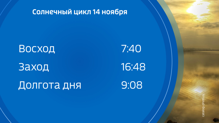 Световой день с начала месяца потерял в своей продолжительности 41 минуту. 13 ноября восход солнца на широте Благовещенска в 7 часов 40 минут, заход в 16:48, продолжительность светового дня составит 9 часов 8 минут.