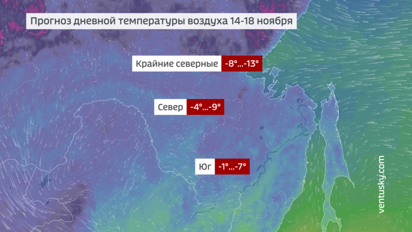Что касается температуры воздуха, то на севере в течение недели ночью 12-17 градусов мороза, по крайним районам минус 20-25. На юге минус 10-15, при прохождении циклона в четверг и пятницу около минус 10.