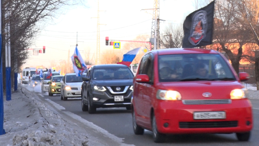 Колонна из 25 машин примерно за час совершила почетный круг по главным улицам Благовещенска и остановилась в сквере Воинов-интернационалистов, чтобы возложить цветы в память о доблестных бойцах. И показать, что благодарность тем, кто стоит на защите государства — важнее новогодней суеты.