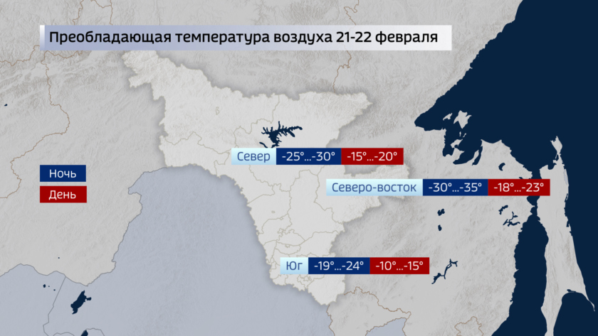 Вторник ожидается самым холодным. Температура по области ночью 28-33 градуса мороза и лишь местами на крайнем юге 23-28. Днем по северу около 20 градусов мороза, на юге около 15.