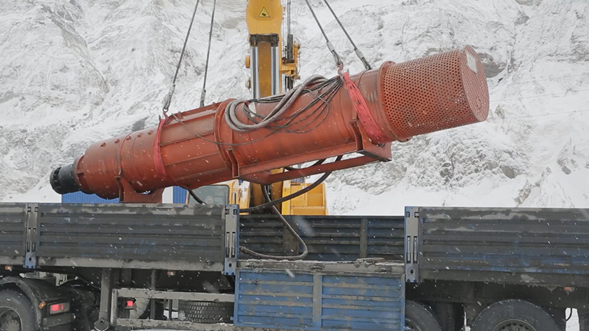 На рудник «Пионер» из Кемеровской области привезли насос высокой производительности 750 м3/час и напором 350 м, который поможет откачать грязь и воду из шахты.