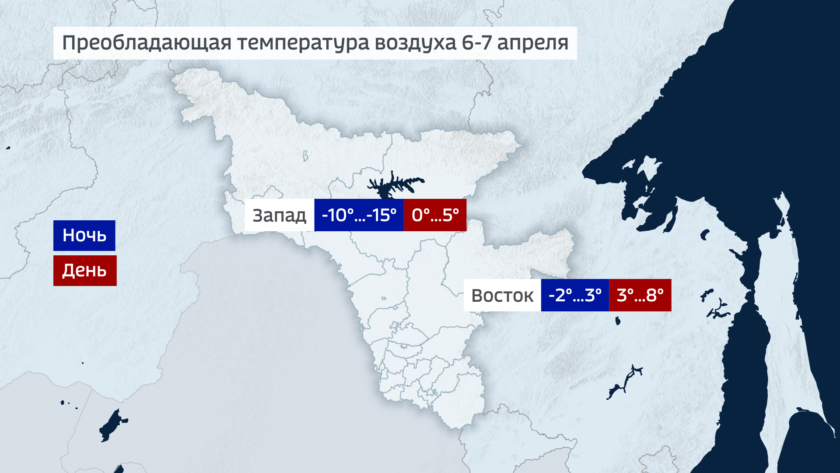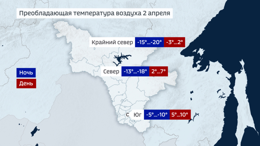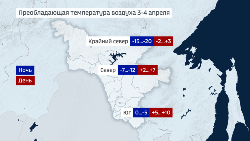 В середине недели температура воздуха ночью по северу 7-12 мороза, в Тындинском округе до 20, на юге от ноля до минус 5. Днем температура та же: 2-7 тепла в северных районах, 5-10 в южных.