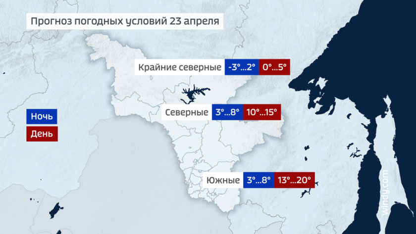 С пятницы циклон полностью покинет материк, сместившись на север Сахалина, и до конца недели мы останемся в его тыловом секторе — с ветром северных направлений до 7-12 м/с и понижением температур. Полное прекращение осадков ожидается в воскресенье. До этого мокрый снег различной интенсивности сохранится главным образом над северо-восточными районами. Но кратковременные заряды осадков локально не исключены и по долине Амура.