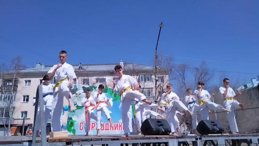 В Прогрессе Первомай открыли торжественным собранием, где юные таланты представили музыкальную открытку, а спортсмены выступили с показательными выступлениями.