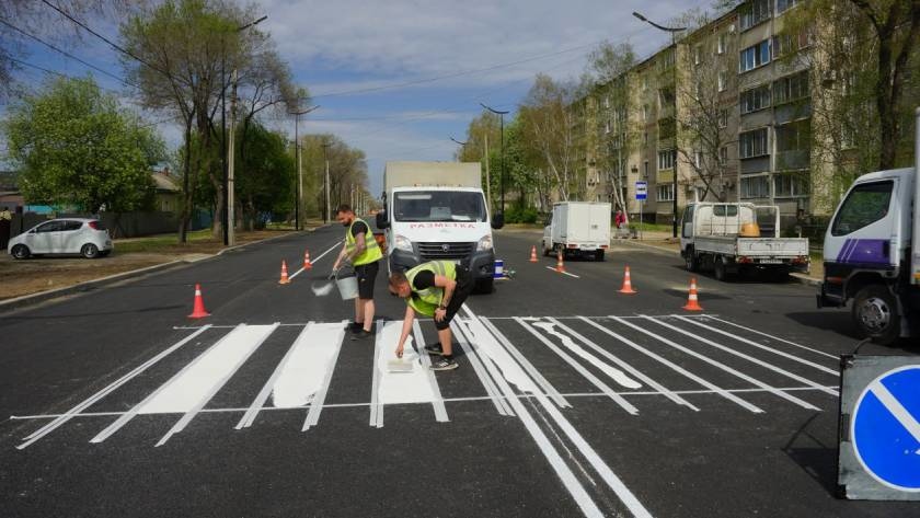 После майских праздников предусмотрен второй этап с использованием холодного пластика. Кроме того, подрядчик устанавливает дорожные знаки и занимается благоустройством участка.