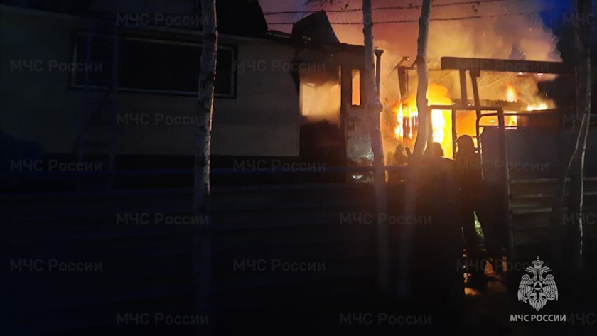 Возгорание произошло поздним вечером накануне в частном доме на улице 8 марта. К моменту прибытия специалистов деревянные строения горели открытым огнем.