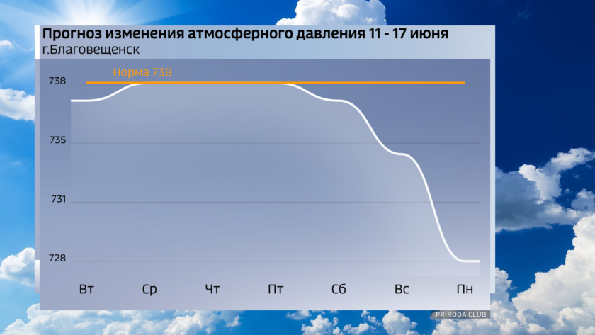 Фон атмосферного давления в течение недели будет довольно спокойным и близким к норме. Понижение давления ожидается к воскресенью.