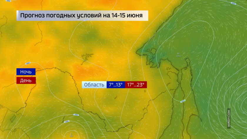 В четверг наша область останется под влиянием северо-восточной циклонической ложбины, но дожди маловероятны. Температура ночью по области +8…+13, днем +17…+22 градуса. По крайним северным районам ночью +2…+7, днем +15…+20 градусов.