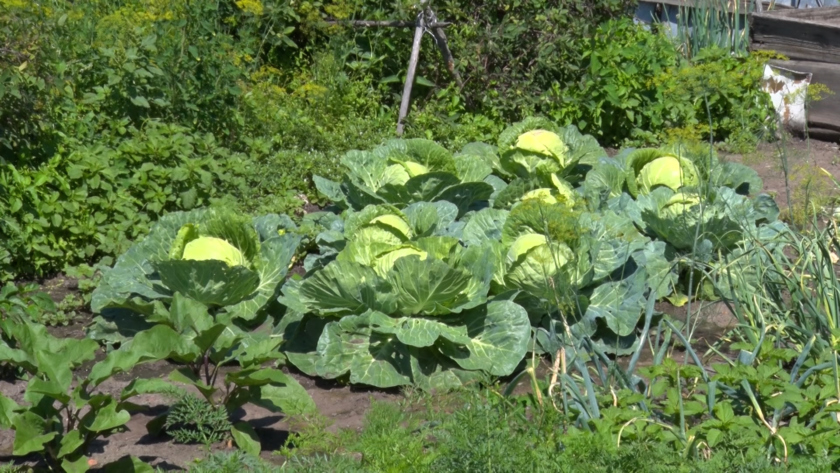 «Вы знаете, вот что удивительно, овощи наши не пострадали. У нас идет немножечко вот с опозданием помидоры, но это причина вовсе, я думаю, не в этом. Просто мы рассаду в этом году попозже посадили. Так-то помидоры вот уже хорошие, набрались они, крупненькие, рясненькие такие вот. А в том плане, что засуха. Вот посмотрите, какая у нас капуста. Засуха. Засуха. Это вот поздняя такая, а ранняя — Александр Федорович начинает уже солить», — делится Татьяна Гуленова.
