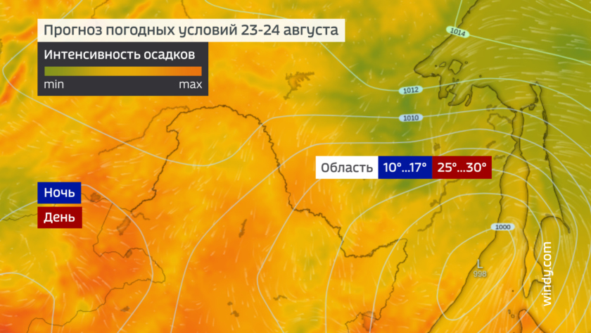 Для тех, кто планирует посетить юг Хабаровского края и Приморье, информируем, что 22-23 августа в этих районах при прохождении глубокого циклонического вихря велика вероятность сильных дождей и ливней.