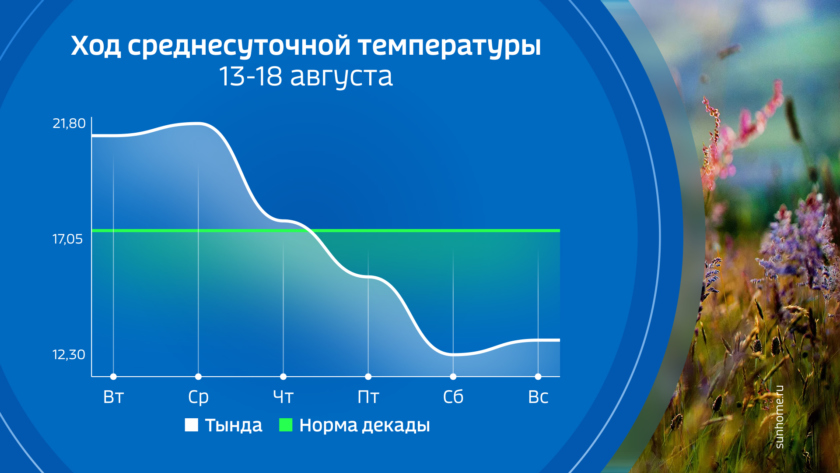 До окончания второй декады августа остаются считанные часы. Показатели ее среднесуточной температуры воздуха по области, как и прогнозировалось, превышали климатические нормы. Однако в прошедшие выходные температурный фон заметно понизился, местами на севере области ночные температуры приблизились к нулевым отметкам.