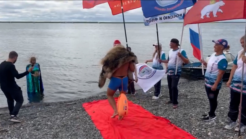«Мы везде несем флаг. Самый уникальный заплыв, который был, — это Чукотка — Аляска. Был, есть и остается. И рукав Дудинка — Диксон уникален тем, что Арктика русская была, есть и остается, кто бы не желал в нее попасть, не получается, только русским спортсменам удалось проплыть по водам сибирской и могучей реки Енисей», — говорит организатор заплыва «Арктический рубеж» Александр Брылин.