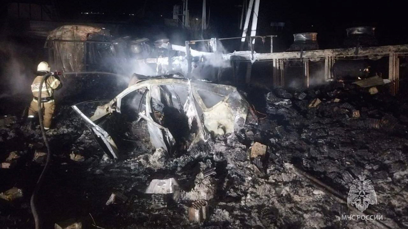 После этого Toyota Prius и грузовой транспорт, перевозивший пиротехнику, загорелись. На месте происшествия работали девять пожарных и три единицы спецтехники. Для вытягивания искореженной иномарки из-под грузовика понадобилась работа спасателей, говорится в информации регионального управления МЧС.