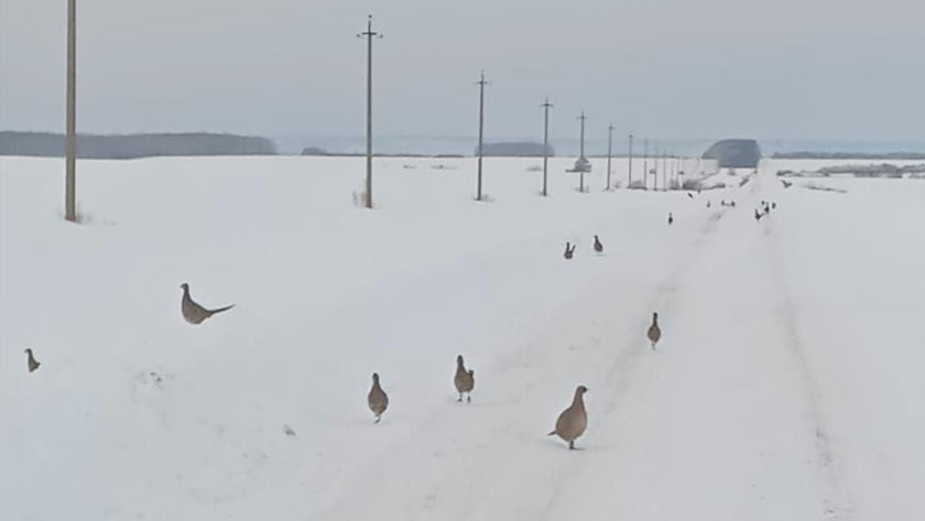 Слишком глубокий снег гонит фазанов с полей на проезжую часть, предупреждает Дирекция по охране животного мира. Такие кадры специалисты сделали в Белогорском округе. Птицы надеются найти на дорогах не только корм, но и камешки, необходимые им для нормального пищеварения.