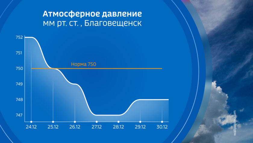 Фон атмосферного давления в течение недели ожидается без резких колебаний, его значения будут находиться чуть ниже нормы декабря.