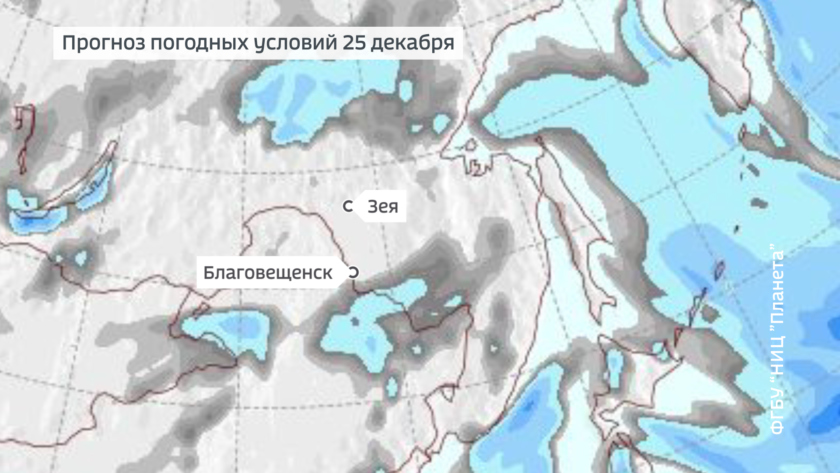 По данным на 20 декабря, в районе города Благовещенска уровень воды на Амуре и Зее выше нормы на 1 метр. Ледостав на Зее зафиксирован с 17 декабря. В связи с небезопасным выходом наблюдателей на лед для измерения толщины льда и высоты снега на реке наблюдения на реках 20 декабря не производились.