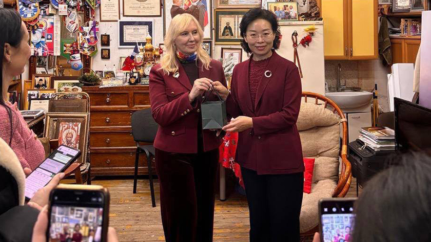 Посещение мастерской гостями из Поднебесной было приурочено к празднованию китайского Нового года. Возглавила делегацию Чжао Инчунь, член постоянного комитета коммунистической партии Китая города Хэйхэ и начальник отдела пропаганды. На память о визите иностранцам вручили небольшие иконы, которые были созданы мастером витражной живописи. А Чжао Инчунь преподнесла супруге Александра Тихомирова памятный подарок.
