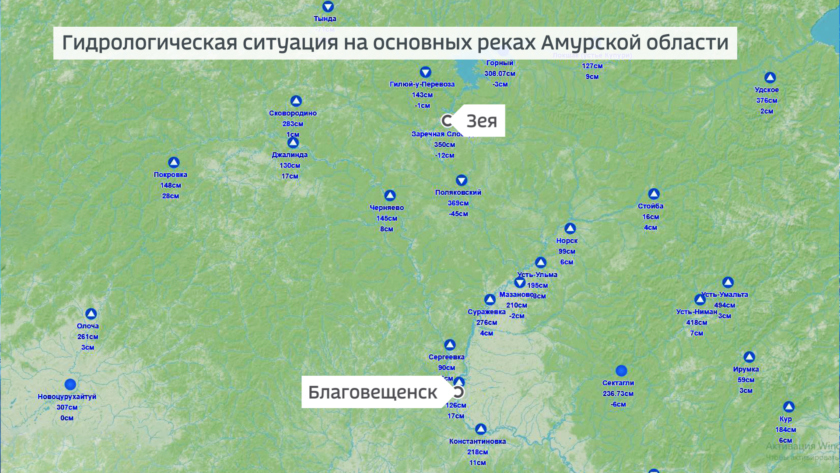По состоянию на 8 утра 14 апреля в районе областной столицы уровень воды на Амуре составляет 126 сантиметров, подъем за сутки 17, вода на льду. На Зее уровень 191, подъем за сутки на 35 сантиметров, вода на льду, у Белогорья закраины, подъем на 12 сантиметров за сутки, уровень 414.