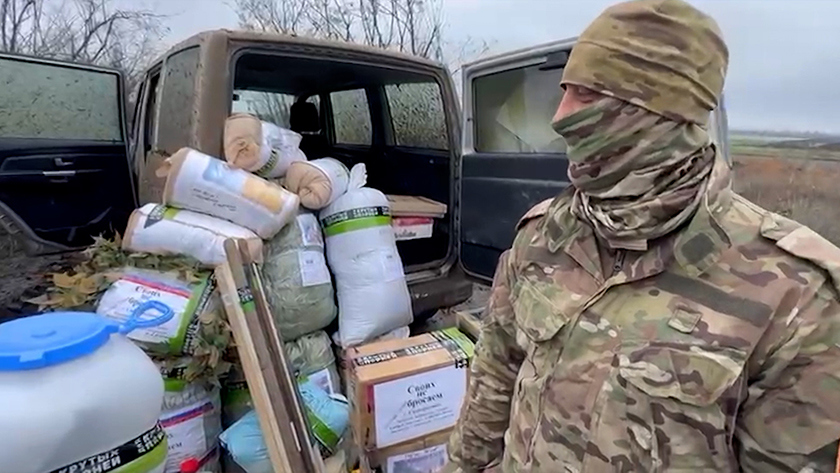 — Привезли ребятам флисовые костюмы от отряда «Хамелеон», Амурская область, медикаметы — «Белогорье фронту», от группы «Добро». От группы «Помогаем нашим»- строительные перчатки, повязки, которые наши девочки шьют, бинты, жгуты и стельки. Трусы от «Надежного тыла», Циолковский, армейский суп «Шаг к победе», супы, борщи, здесь даже борщ с майонезом есть.