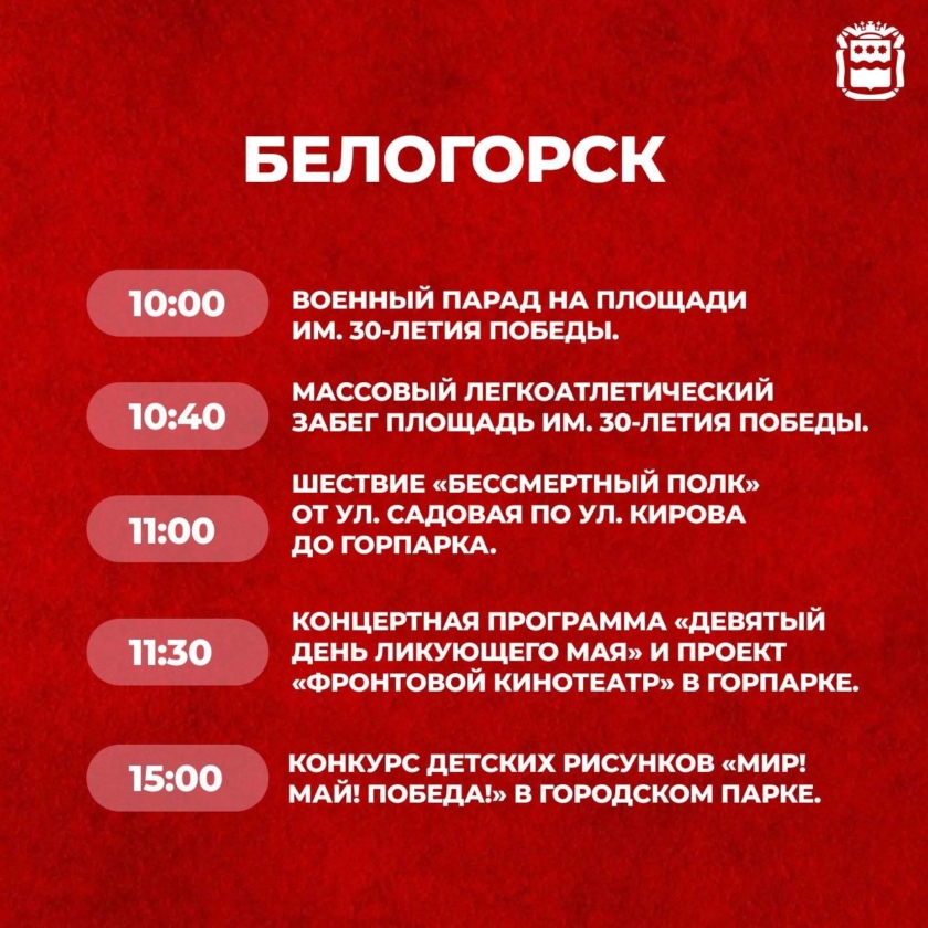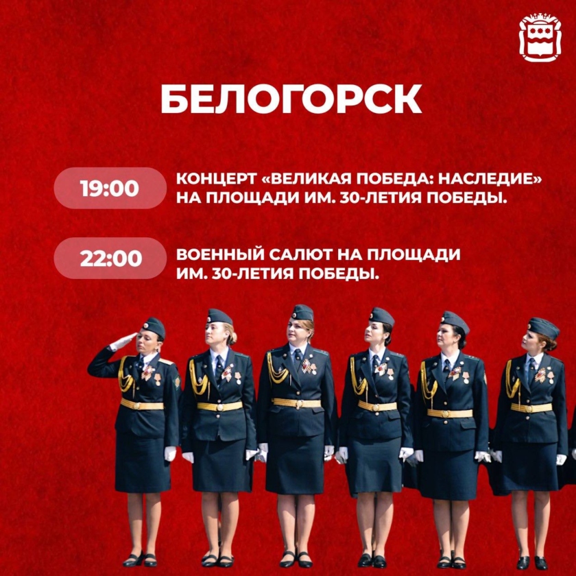 Единственный в области военный парад Победы традиционно состоится в Белогорске, где располагается штаб 35 Краснознамённой общевойсковой армии. Его трансляция будет идти на нашем сайте, а также в соцсетях в аккаунтах «Вести — Амурская область». Начало в 10 часов.