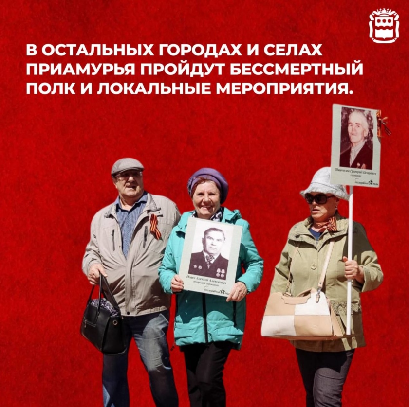 В остальных муниципалитетах Приамурья также пройдут «Бессмертный полк» и множество локальных торжественных мероприятий.