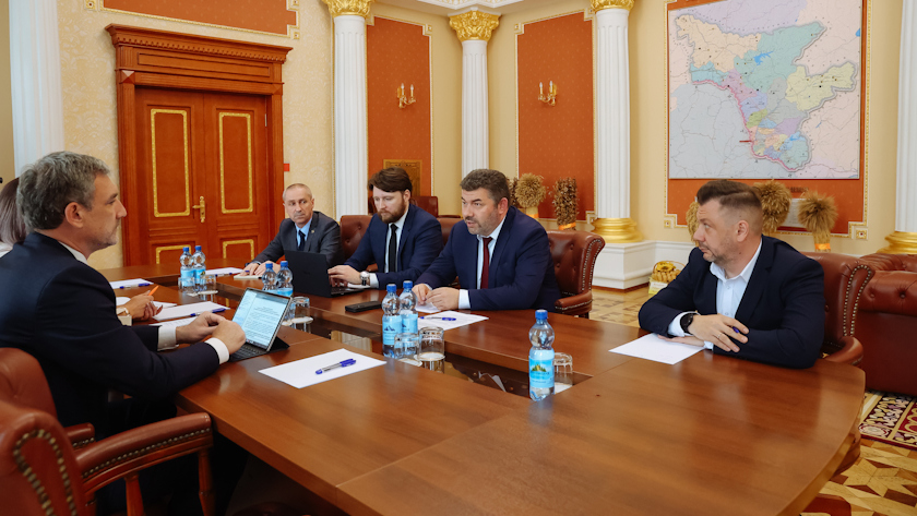 На встрече Василий Орлов и Олег Казанов поговорили о сотрудничестве в сфере освоения минеральных ресурсов и соблюдении природоохранных законов предприятиями.