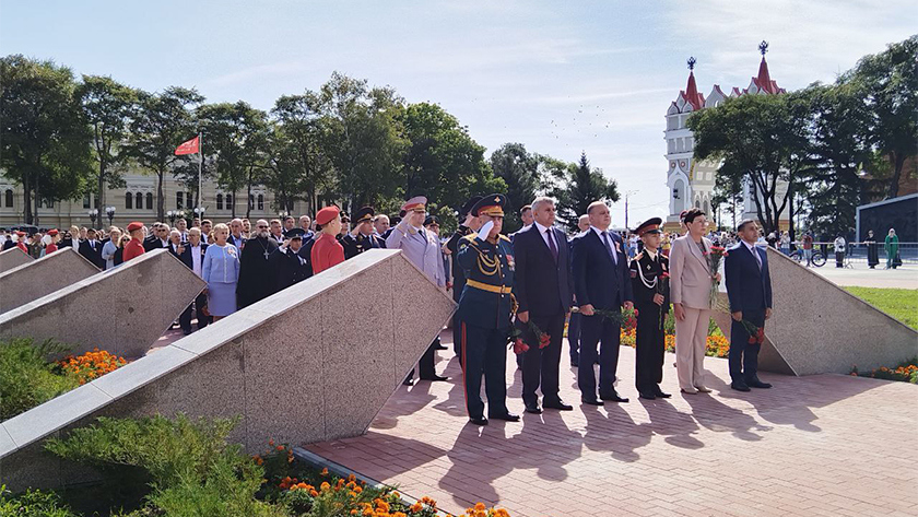 Церемонию возложения цветов провели у бронекатера Амурской краснознаменной речной флотилии. Затем по площади Победы маршем прошли войска Благовещенского гарнизона. В строю также пограничники, представители Росгвардии, курсанты и офицеры ДВОКУ и филиала морского государственного университета имени Невельского. Участники акции возложили цветы к памятнику воинам-амурцам. На месте сейчас работает наша съемочная группа. О торжественных событиях, приуроченных ко Дню воинской славы, мы расскажем в следующих выпусках новостей.