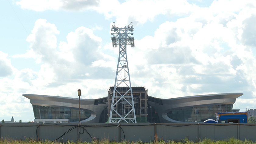 Параллельно на площадке идёт активное строительство пассажирского терминала для путешественников по трансграничной канатной дороге. Готовность объекта 70 процентов. Сейчас строители занимаются инженерными работами.