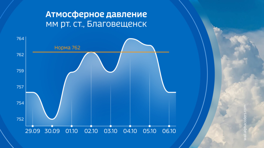 Атмосферное давление на уровне моря в Благовещенске низкое и будет колебаться по мере смещения барических систем.