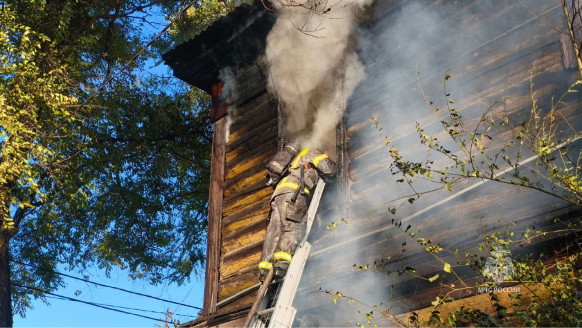 Крупный пожар в двухэтажном деревянном доме тушат на переулке Рёлочном, сообщает пресс-служба ГУ МЧС России по Амурской области.