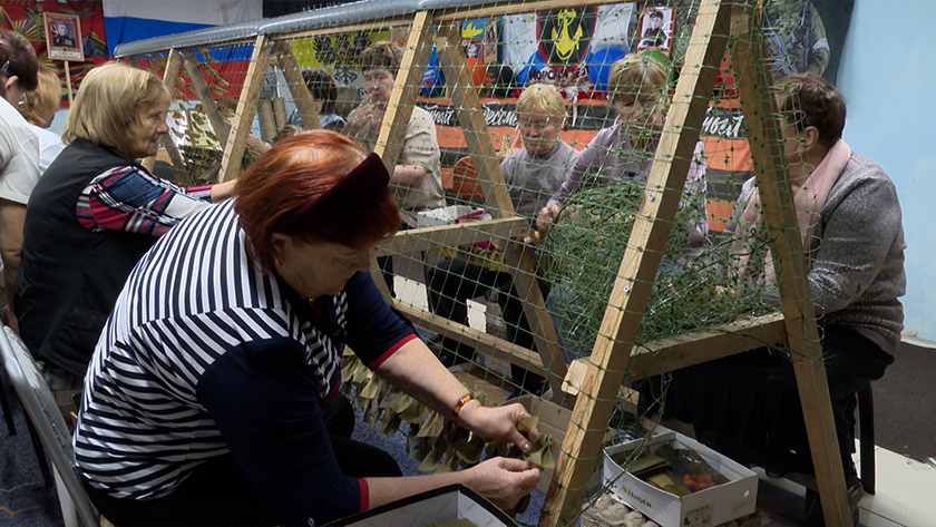 После всех этапов работы с лентой, готовые изделия забирают женщины, которые и плетут маскировочные сети. Участники признаются, что вся усталость исчезает, как только в ответ получают видео-сообщения от бойцов с рулонами нового камуфляжа.