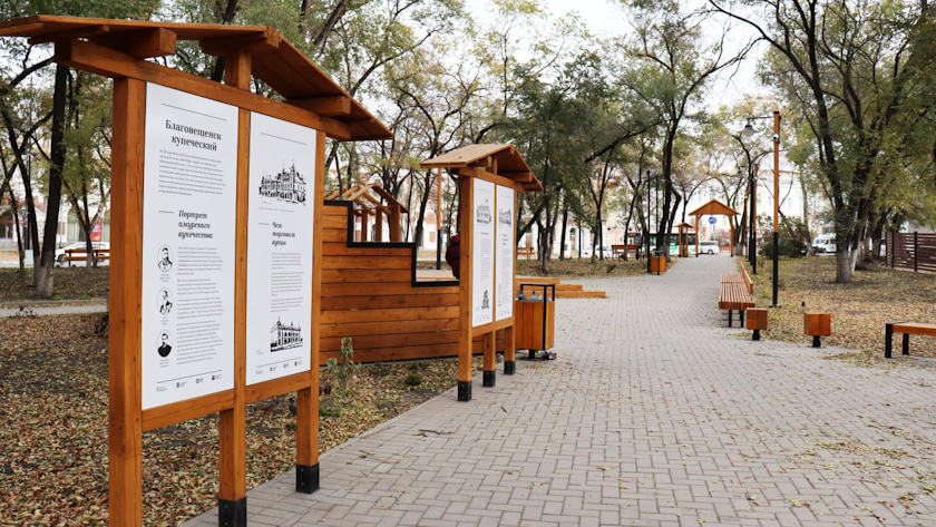 В зелёной зоне появились тротуары, качели, скамейки, а также малые архитектурные формы и стенды об истории Приамурья — тематика, в которой выполнен проект, посвящённый купечеству. Идею дизайна в 2024 году поддержали благовещенцы в ходе всероссийского онлайн-голосования. Сквер благоустраивали в рамках нацпроекта «Инфраструктура для жизни».