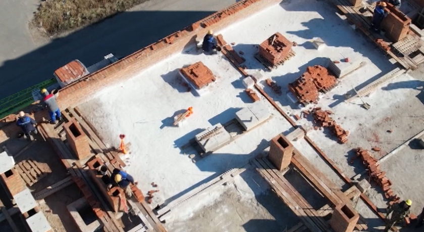 «Кладочные основные работы закончили, зашли вовнутрь. Остались у нас самые большие работы — это крыша и благоустройство уже вот вот заканчивается. У нас внутренняя работа сейчас только. Идем по графику. Дом будет тёплый, это 100 процентов, потому что здесь стена по толщине отличается по толщине от остальных домов. Утепление, пенопласт, все это сделали», — рассказывает начальник участка компании-подрядчика Джамрумбек Камборолиев.