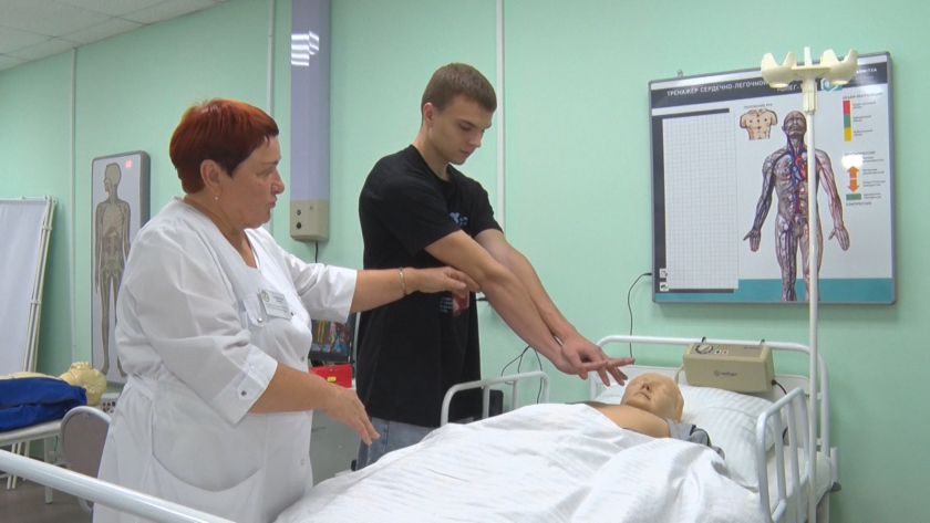 Для Ярослава Кашалапова это не первое знакомство с симмуляционым манекеном. Однако сердечно-лёгочную реанимацию ему делать ещё не приходилось. Благодаря сотрудничеству медицинского колледжа и десятой школы Благовещенска, каждый четверг юноша узнаёт тонкости престижной работы. День открытых дверей — ещё одна возможность закрепить базовые навыки и убедиться в правильности выбора будущей профессии.