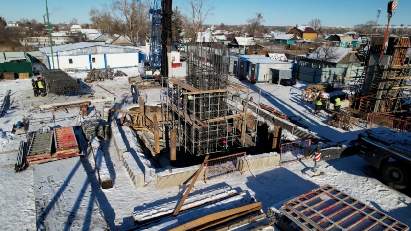 Каждый день на площадке работают более 50 человек и свыше 20 единиц спецтехники. Строителям приходится применять особые технологии — сооружать тепляки и постоянно прогревать конструкции.