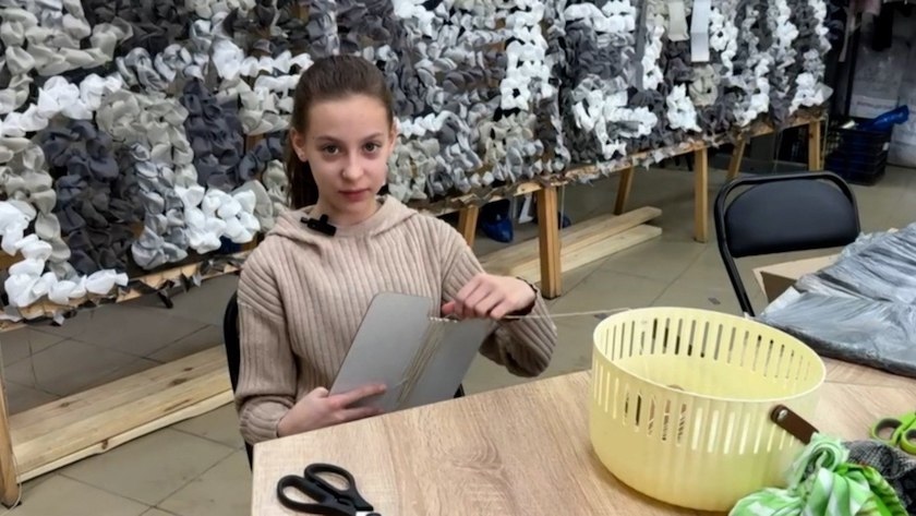 Десятилетняя Софья Говорина плетет маскировочные сети, упаковывает сухпайки и гигиенические принадлежности, шьёт защитные костюмы. К волонтёрам прошлым летом её привела мама. С тех пор девочка плечом к плечу трудится со старшими товарищами. Каждый месяц они изготавливают и отправляют на фронт более сотни вещей.
