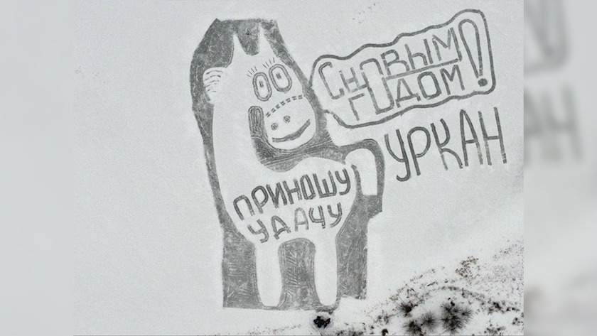 Следом за ними к акции присоединились жители северной части Приамурья. Новогодний привет передали жителям области художники из села Уркан Тындинского округа. На льду они нарисовали лошадь — символ 2026-го.