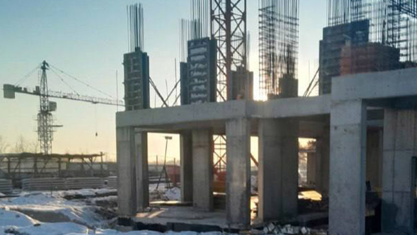 Строительство детского сада на 350 мест продолжают в Свободном. Сейчас рабочие занимаются монтажом опалубки плиты перекрытия.