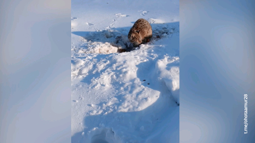 Редкий гость. Амурский лесной кот наведался во двор жителя села Винниково Михайловского округа. Амурчанин поделился видео с областным управлением по охране животного мира.