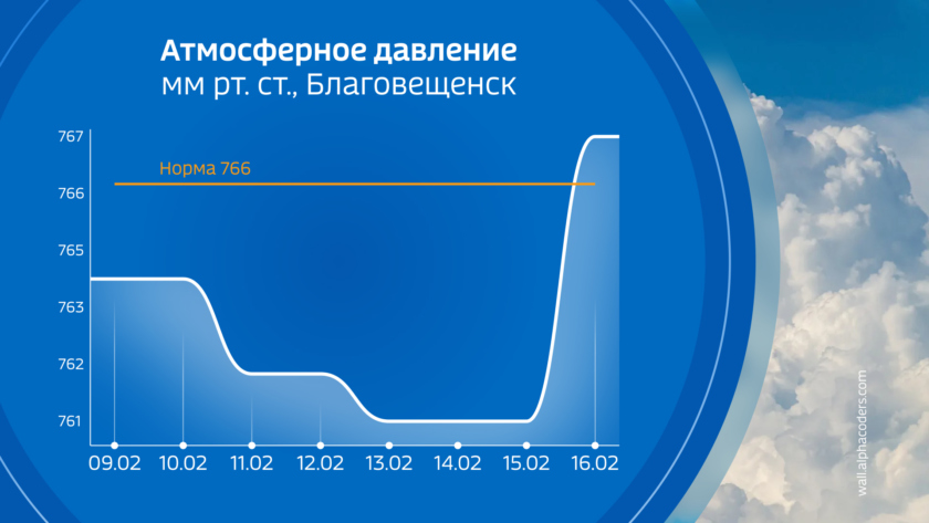 Восход солнца на широте Благовещенска во вторник 10 февраля в 07:51, заход в 17:37, продолжительность светлого времени суток 9 часов 46 минут. За последнюю неделю день прибавил 23 минуты.