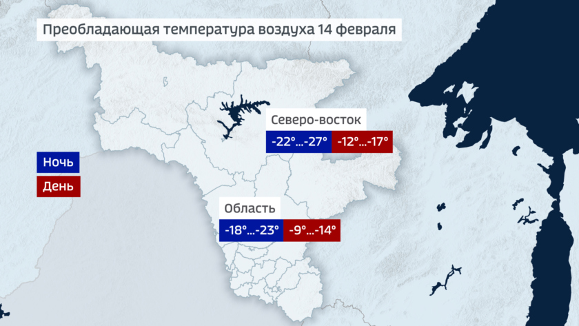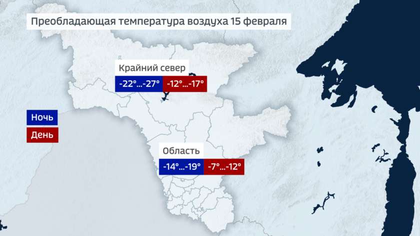 В ночь на воскресенье 14-19 по всей области, в крайних северных районах около 25, днем 7-12 градусов мороза, на северо-востоке около 15. Однако комфортность погоды в выходные испортит ветер, порывы которого временами составят 10-15 метров в секунду.