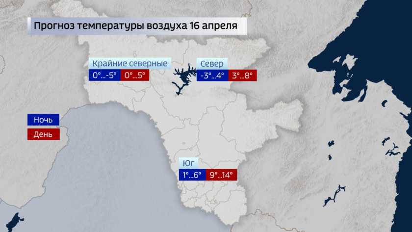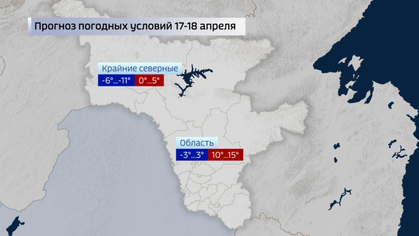 В ночь на четверг по области от 1 до 6-ти градусов тепла, по крайним северным районам 0, минус 5-ти. В дневные часы столбики термометров поднимутся до плюс 10…+15-ти градусов, по северу в осадках — 0…+5-ти, местами по крайним районам до минус 5-ти.