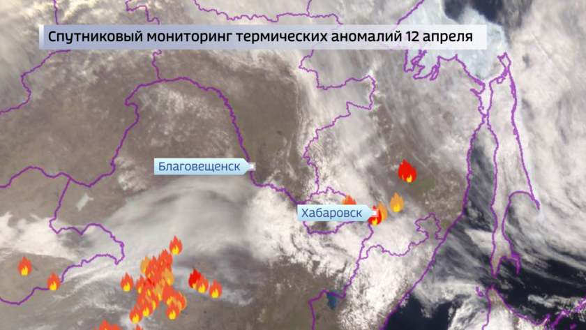 В районе города Благовещенска 13 апреля на Амуре уровень воды превышал норму на 70 см, фиксируются закраины в 1 балл. На Зее в районе областной столицы уровень воды выше нормы на 145 см, ледяной покров с полыньями в 7 баллов, у Белогорья уровень выше на 50 см, на реке закраины в 1 балл. Температура воды в реках близка к 0 градусов.