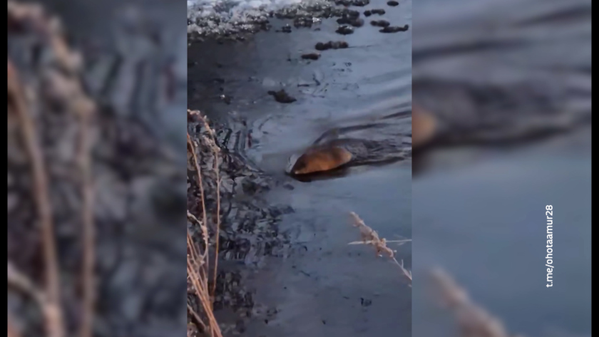 Торопливую ондатру встретил инспектор охотнадзора в Октябрьском округе. Деловитый зверек быстро плыл по ручью. С приходом весны у этих животных начинается период особой активности.